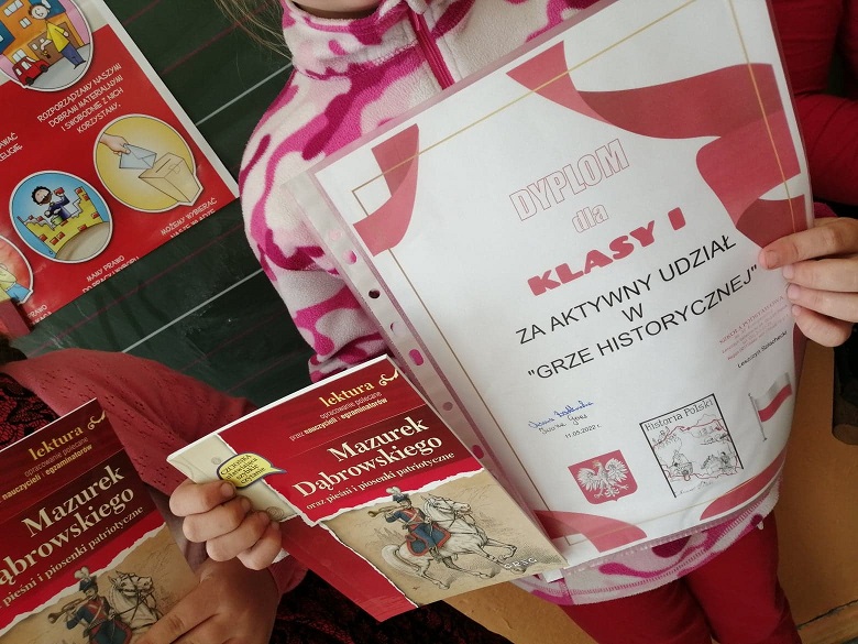 Młodsi uczniowie naszej szkoły również pielęgnują wartości historyczne oraz patriotyczną postawę. Najlpeszym tego wyrazem był ich udział w "Grze historycznej" podczas, której doskonale poradzili sobie z zadaniami wymagającymi rozległej wiedzy o naszej Ojczyźnie. Poszczególne etapy gry różniły się od siebie i wymagały od dzieci współpracy. Nowoczesność np. odczytywanie kodów QR przeplatała się z zamierzchłymi dziejami np. legendami. Dla uczniów była to cenna lekcja historii oraz okazja do wspólnej zabawy.