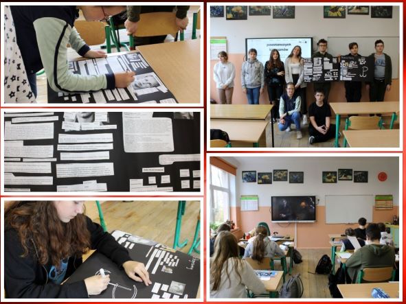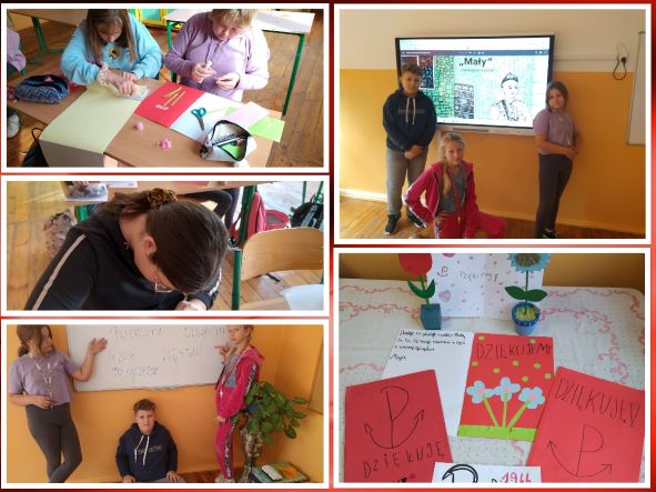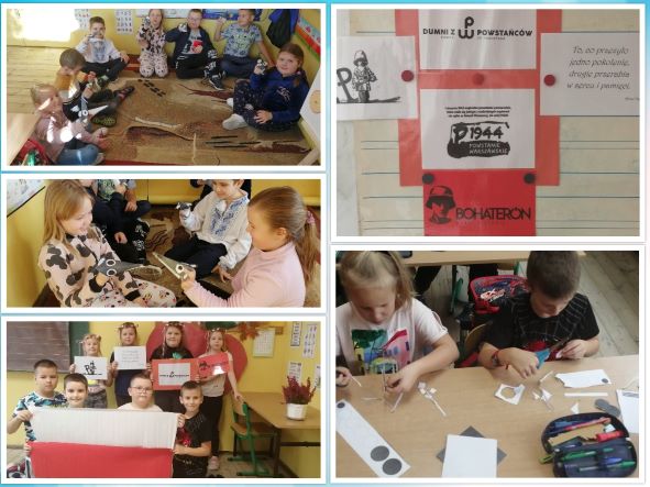 Uczniowie kl. 0-VIII z ciekawością i zapałem realizowali działania zaproponowanie przez organizatorów m.in. obejrzeli przedstawienie teatralne pt. "Niebajka o Powstaniu Warszawskim", śpiewali piosenki, układali puzzle, wykonali plakaty, prace plastyczne z papieru.