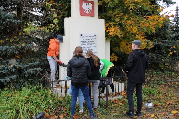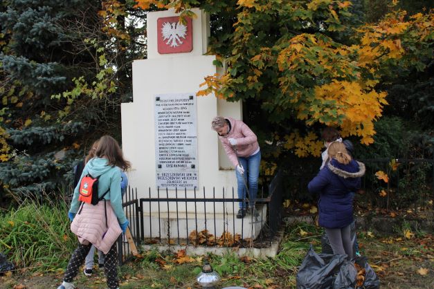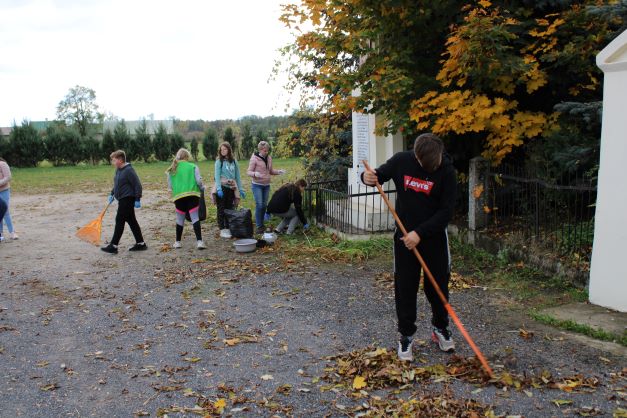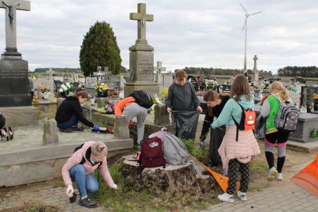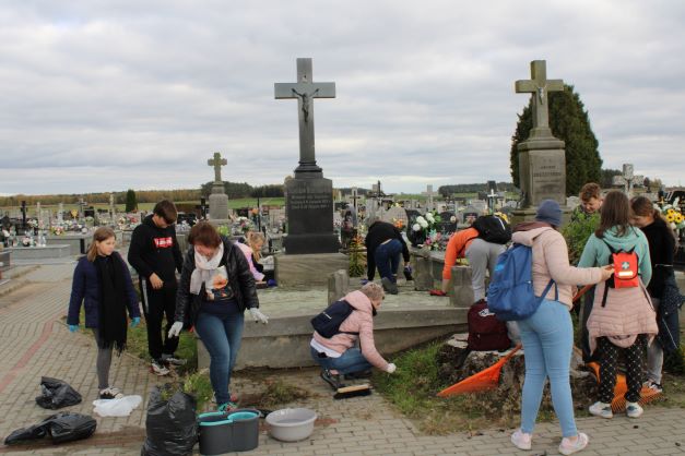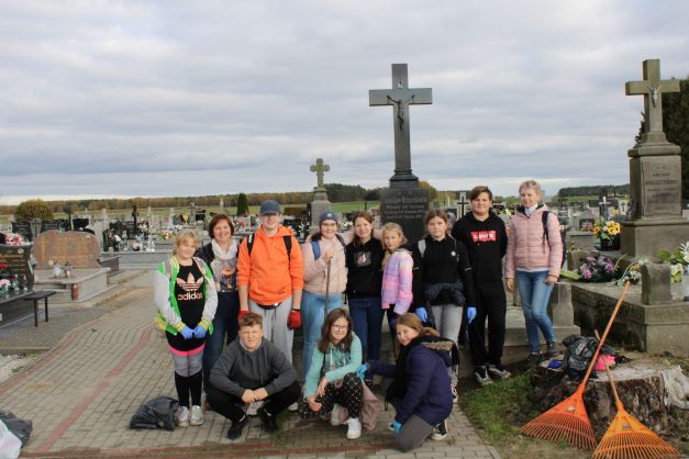 W ramach akcji odbyliśmy rajd pieszy na cmentarz parafialny w Zagrobie. Naszym celem było uporządkowanie grobów pamiątkowych: pomnika upamiętniającego parafian zagrobskich, którzy padli ofiarą barbarzyństwa niemieckiego oraz synów dziedzica Leszczyna Szlacheckiego Jan i Wojciech Orzeszkowskich, którzy zginęli w powstaniu warszawskim. Na cmentarzu parafialnym zaś nagrobek dziedzica Stanisława Orzeszkowskiego. Podczas naszych działań towarzyszył nam ks. Adam Ners, który po zakończonej pracy zaprosił nas na plebanię na słodki poczęstunek. Mieliśmy czas na zadumę i refleksję podczas opowiadania przez ks. Adama o znaczeniu Święta Zmarłych.