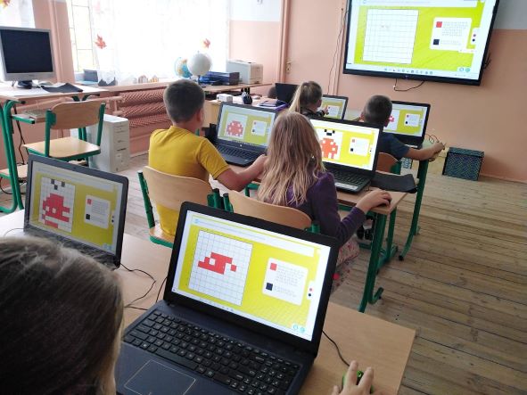 Szkoła uczestniczyła w kolejnej edycji Europejskiego Tygodnia Kodowania - CodeWeek2022. Na zajęciach informatyki były zabawy z pikselami (dyktanda graficzne, mozaiki), małe kwadraty uczniowie zamieniali na obrazki. Najmłodsi zaprzyjaźnili się również z robotem DOC, wykonując konkretne polecenia robota, odpowiednio go programując. Najstarsi uczniowie eksperymentowali z nowymi blokami kodującymi w Scratch Lab m.in testowali wykrywanie twarzy, tłumaczyli tekst na wiele języków.