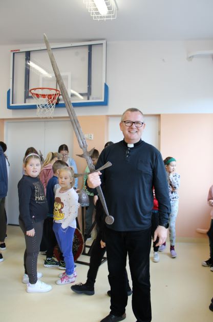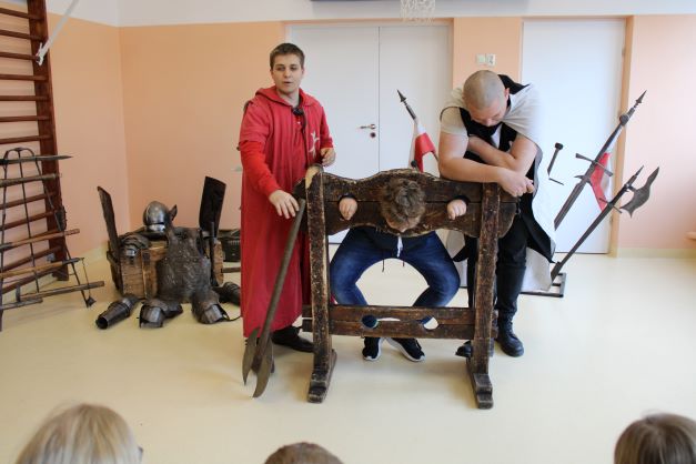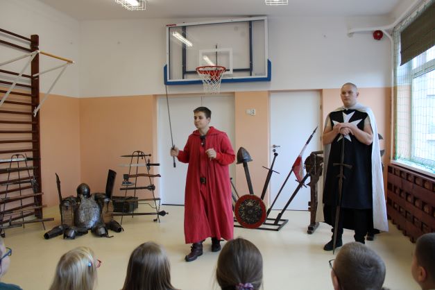 Naszą szkołę odwiedziła Grupa Artystyczna Rekonstrukto z pokazem historycznym "Życie i kultura w średniowieczu". Uczniowie poznali obyczaje, kulturę epoki, dokonali przeglądu ekwipunku i uzbrojenia rycerza średniowiecznego.