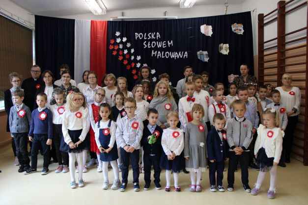 10 listopada 2022 roku w naszej szkole odbył się finał szkolnego konkursu poezji patriotycznej „Polska słowem malowana” z okazji Narodowego Święta Niepodległości.Obchody rozpoczęliśmy od ogólnopolskiej akcji MEiN #SzkołaDoHymnu - wspólnie odśpiewaliśmy „Mazurka Dąbrowskiego”. Dyrektor szkoły pani J. Bojanowska wspominając naszą drogę do zdobywania wolności przywołała słowa marszałka Józefa Piłsudskiego: „Niepodległość nie jest Polakom dana raz na zawsze”. Podkreśliła, że jako obywatele zobowiązani jesteśmy do dbania o przywilej niepodległości oraz dążenia do tego, żeby nigdy nie doprowadzić do utraty tego, co zostało osiągnięte z takim wysiłkiem. Następnie wysłuchaliśmy recytacji wierszy patriotycznych. Oddział przedszkolny zaprezentował utwór Władysława Bełzy pt. „Katechizm młodego Polaka”- „Kto ty jesteś? -Polak mały” wprowadzając w atmosferę historii, tragizmu, dumy, nauki i miłości…