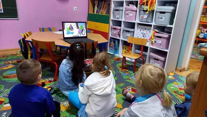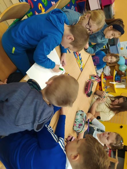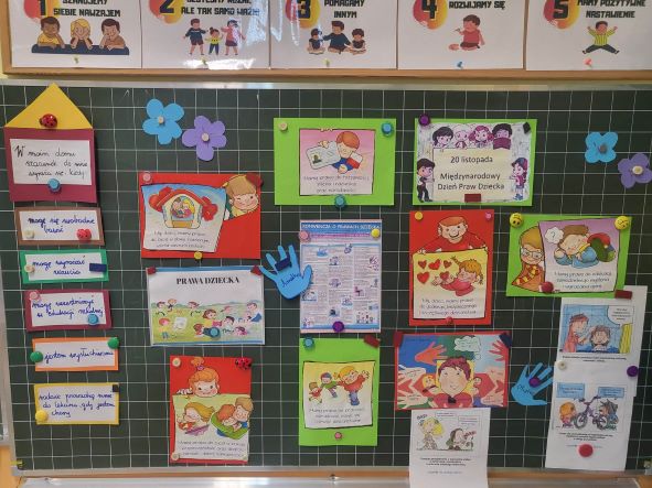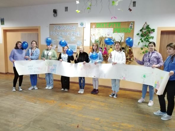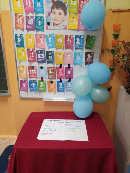 W naszej szkole oczywiście dominował kolor niebieski. Na zajęciach z wychowawcą w kl. 0-VIII zostały przeprowadzone zajęcia edukacyjne w oparciu o przygotowane przez UNICEF scenariusze dostosowane do odpowiednich grup wiekowych. Uczniowie obejrzeli krótkie filmy, prezentacje dotyczące tej tematyki, zmierzyli się z grami, quizami o prawach dziecka, powstały również prace plastyczne.