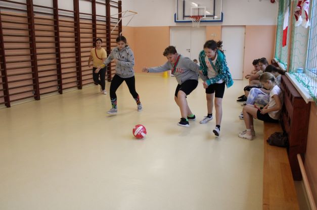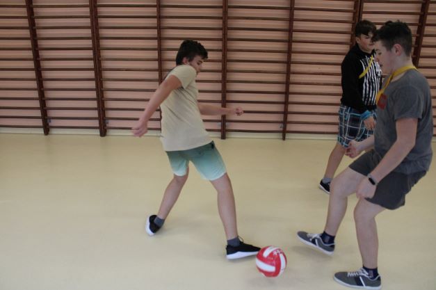 Chłopcy z kl. VIII na zajęciach wychowania fizycznego zorganizowali rozgrywki w piłkę nożną. Zabawa była znakomita.