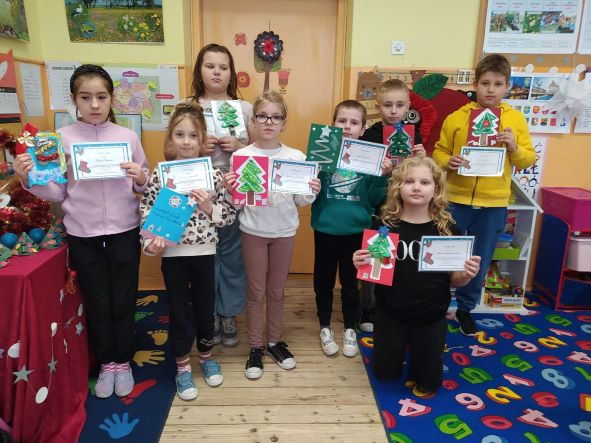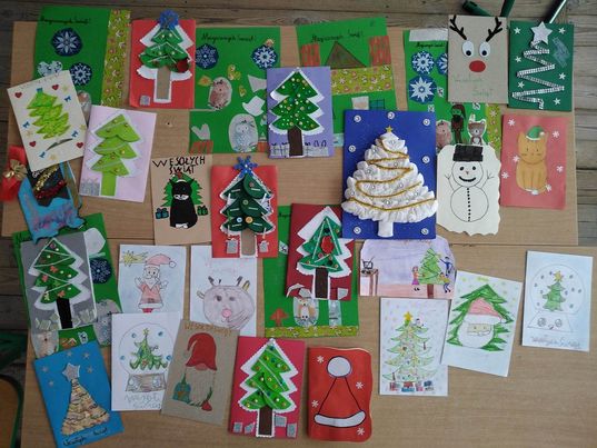 Uczniowie wypisywali kartki do swoich bliskich oraz wzięli udział w konkursie plastycznym na najładniejszą kartkę świąteczną.