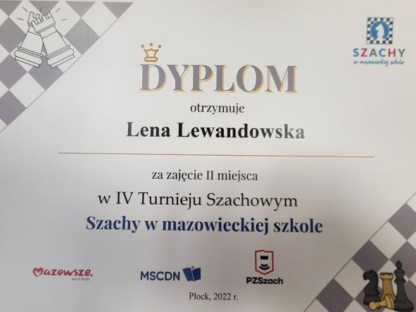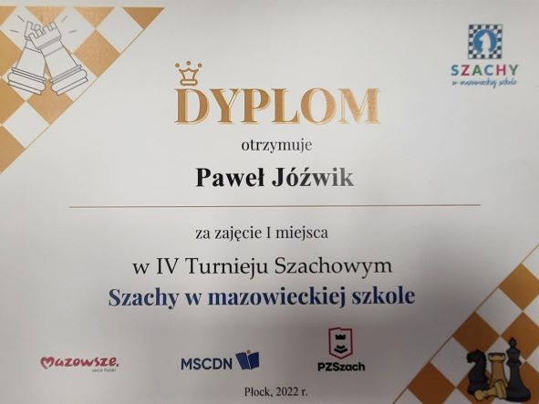 29.11.2022r. w MSCDN w Płocku odbył się IV Turniej Szachowy skierowany do uczniów klas II, III i IV. Naszą szkołę reprezentowali: Paweł Jóźwik kl.II, Kornelia Różycka kl.II, Lena Lewandowska kl.III i Maria Wojciechowska kl.III. W turnieju wzięło udział 29 uczestników z 8 szkół z Płocka i okolic. Turniej sędziował Ryszard Królikowski trener, sędzia PZSz.