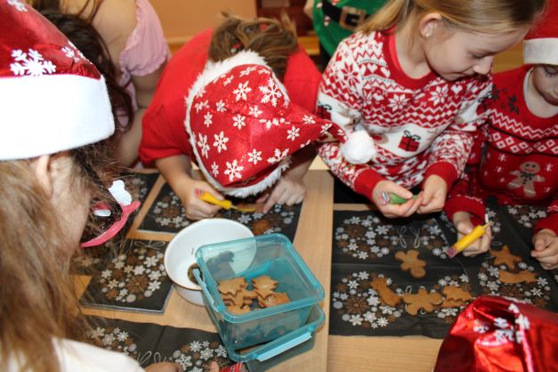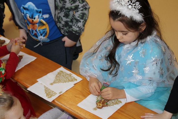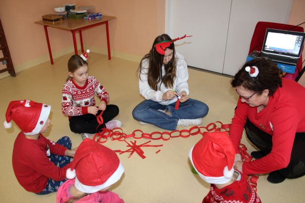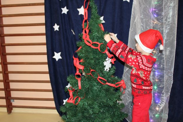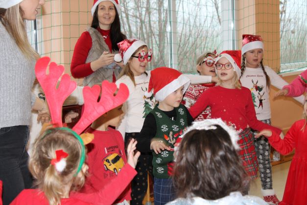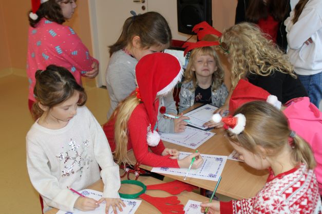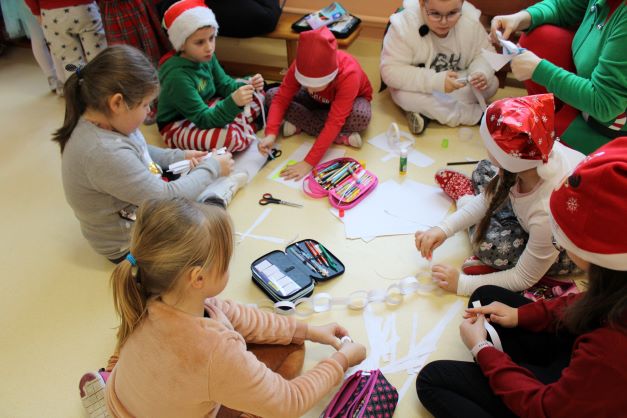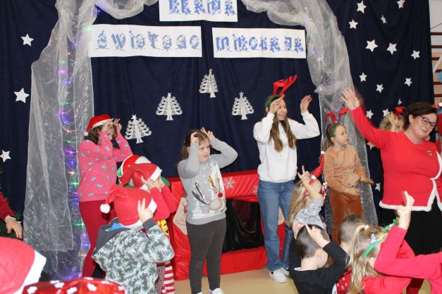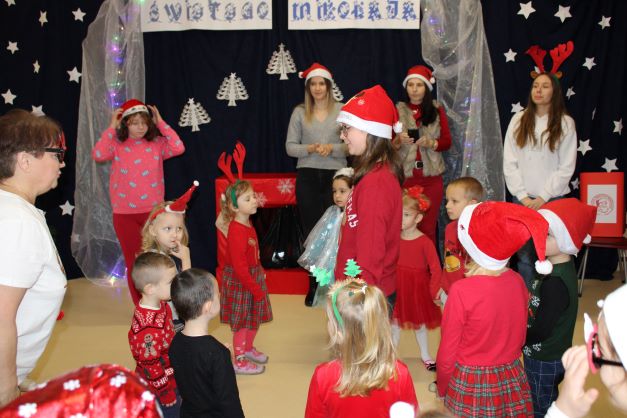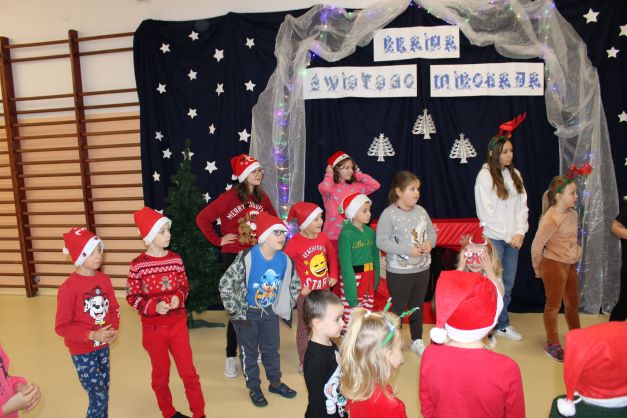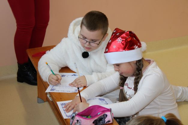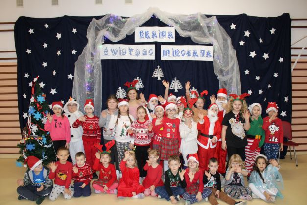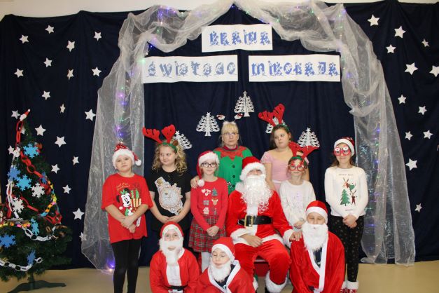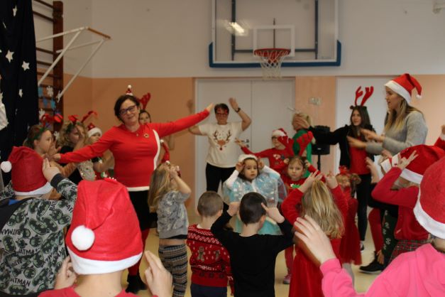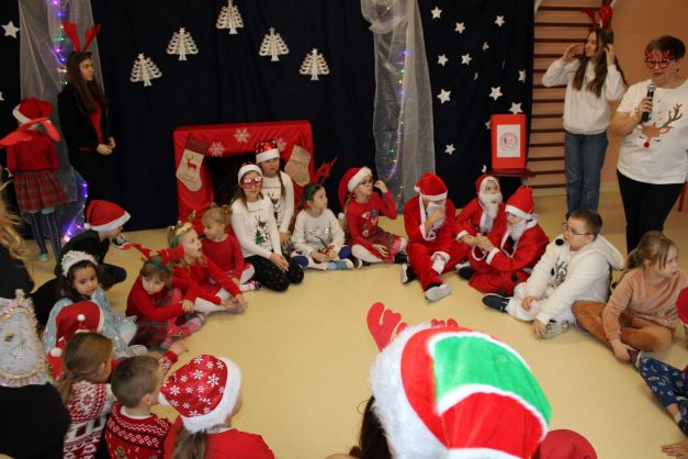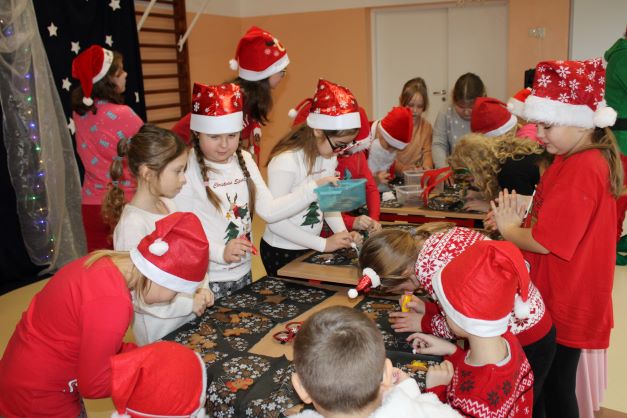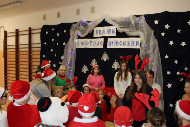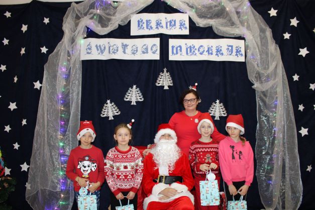 Samorząd Uczniowski zorganizował dla swoich młodszych kolegów z kl. 0 -III spotkanie z Mikołajem. Wszystko zaczęło się od zabawy integracyjnej. Później dzieci miały do wykonania wiele zadań m.in.: wykonanie łańcuchów, ubieranie choinki, quiz świąteczny, dekorowanie pierniczków, pisanie listów do Mikołaja oraz wyścigi zaprzęgów. Po ciężkiej pracy przyszedł czas na prezenty od Świętego Mikołaj. Zabawa była super, pełno śmiechu i radości.