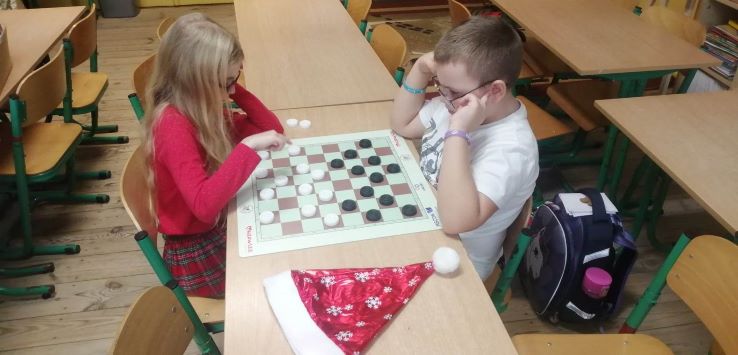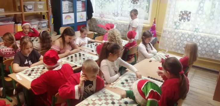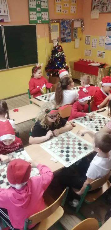 Uczniowie klas I-III uczestniczyli w Szkolnym Mikołajkowym Turnieju Warcabowym.