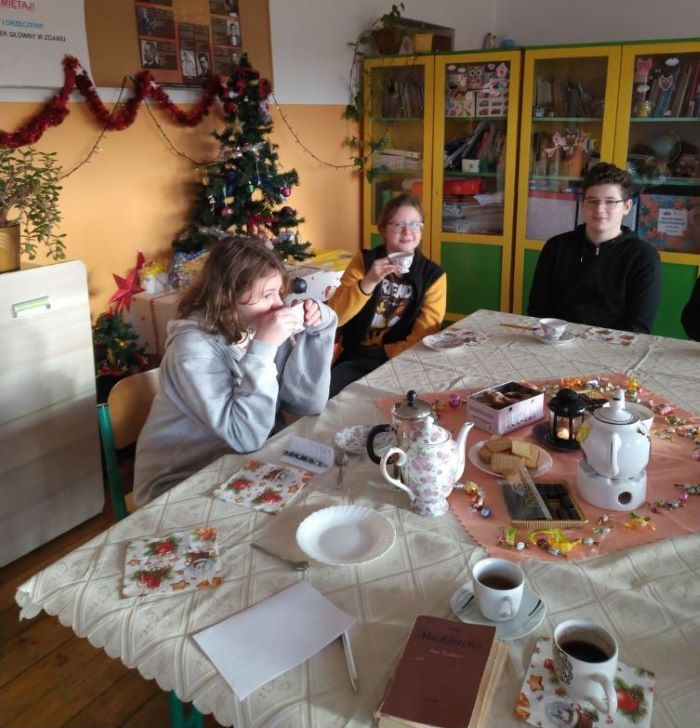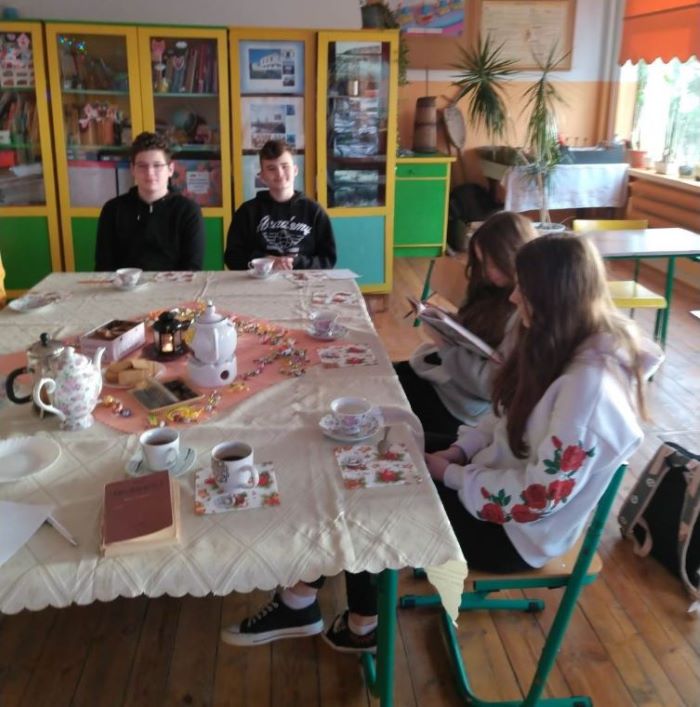 Od filmu do herbatki. Uczniowie ósmej klasy omawiając obowiązkową lekturę pt. „Pan Tadeusz” Adama Mickiewicza uczestniczyli w wirtualnej wizycie w Muzeum Pana Tadeusza Ossolineum we Wrocławiu. Obejrzeli filmy edukacyjne, w których poznali np. konteksty historyczne utworu, świat przedstawiony- miejsca akcji: dwór w Soplicowie, zaścianek Dobrzyńskich, zamek Horeszków, obyczajowość - strój szlachecki. Oglądali fragmenty ekranizacji dzieła z 1928, był to film niemy wyreżyserowany przez Ryszarda Ordyńskiego, scenariusz napisali Andrzej Strug oraz Ferdynand Goetel. Widzieli również urywki bardziej znanego, bo pełnometrażowego filmu fabularnego na motywach poematu Adama Mickiewicza w reżyserii Andrzeja Wajdy, zrealizowanego w 1999 roku.