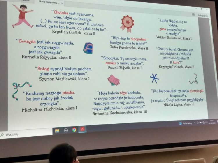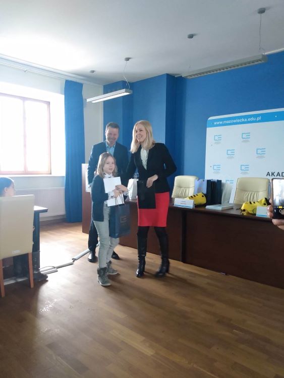 Uczniowie klasy II wzięli udział w wojewódzkim konkursie literackim "Słowa mają wielką moc", organizowanym przez Akademię Mazowiecką w Płocku oraz Towarzystwo Kultury Języka Oddział w Płocku. W związku z uplasowaniem się na wysokich miejscach dostaliśmy zaproszenie na uroczyste wręczenie nagród, które odbyło się w murach Akademii Mazowieckiej. W kategorii kl.I-III Krystian Cieślak zajął I miejsce, Kornelia Różycka - II miejsce, Krzysztof Misiak - III miejsce, Julia Kondracka oraz Paweł Jóźwik - wyróżnienie. Gratulujemy!!!
