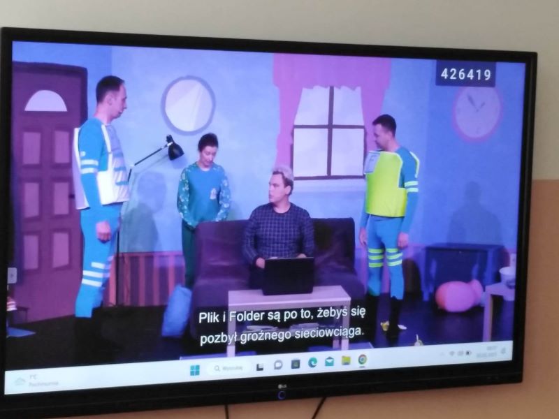 Uczniowie kl. I-III oraz IV-VI w ramach Dnia Bezpiecznego Internetu obejrzeli spektakl online "Dzieci Sieci - Plik i Folder na tropie internetowych kłopotów". Dzieci dowiedziały się o zagrożeniach, na jakie mogą natknąć się w sieci, a Plik i Folder krok po kroku wyjaśnili im, jak mogą poradzić sobie z nimi. Przedstawienie powstało dzięki wspólnemu działaniu NASK i grupy artystycznej ZYGZAKI. Następnie odbyło się interaktywne spotkanie online na żywo z bohaterami Plikiem i Folderem.