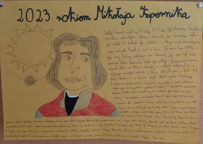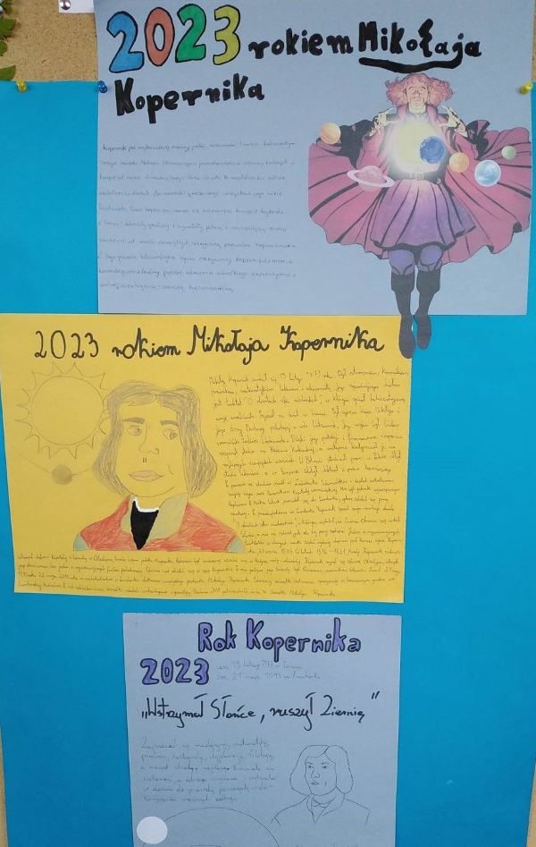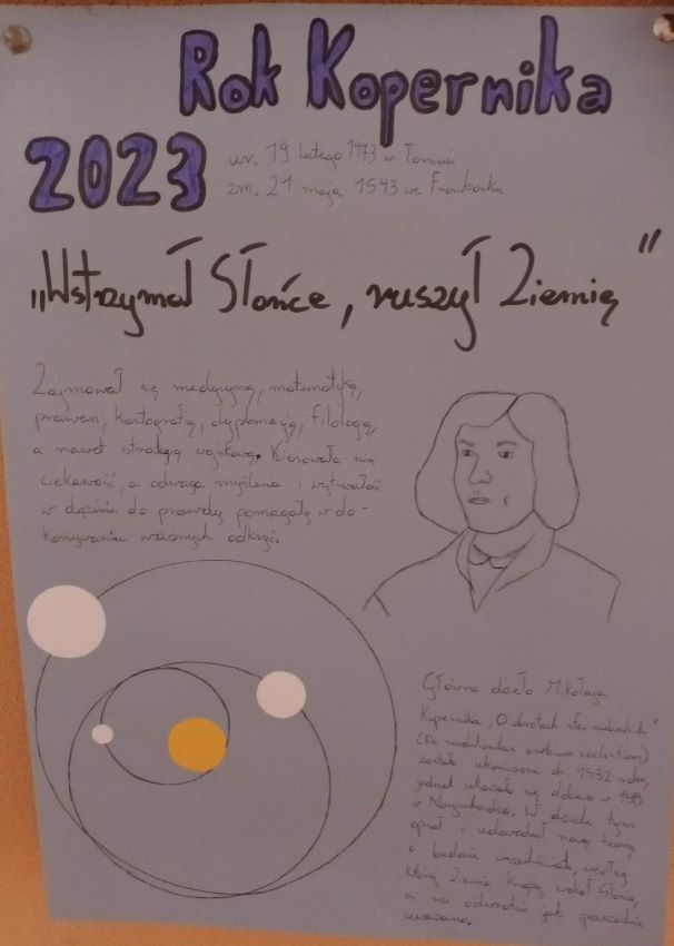 Senat RP ogłosił rok 2023 Rokiem Mikołaja Kopernika. Datę powiązano z rocznicą pięćset pięćdziesiątych urodzin i czterysta osiemdziesiątą rocznicą śmierci Mikołaja Kopernika. Uczniowie kl. VII - VIII na lekcji fizyki wykonali prace inspirowane życiem i działalnością Mikołaja Kopernika.