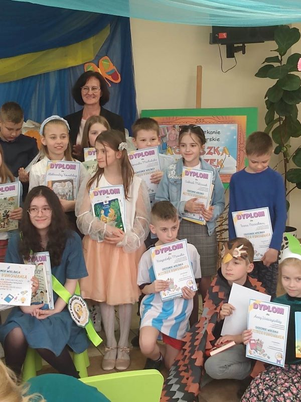 Książnica Płocka im. Władysława Broniewskiego w Płocku i Biblioteka dla dzieci im. Wandy Chotomskiej po raz kolejny zaprosiła uczniów z regionu płockiego do udziału w konkursie recytatorskim „Chotomek wyłania MISTRZA RYMOWANIA 2023". Wyzwaniem uczestników było zaprezentowanie przed jury i publicznością utworu z kanonu poezji dziecięcej oraz własnego wiesza/rymowanki. Naszą szkołę dzielnie reprezentowali Krzysztof Misiak z kl. II oraz Marcel Jagliński z kl. III. Chłopcom gratulujemy świetnych występów.