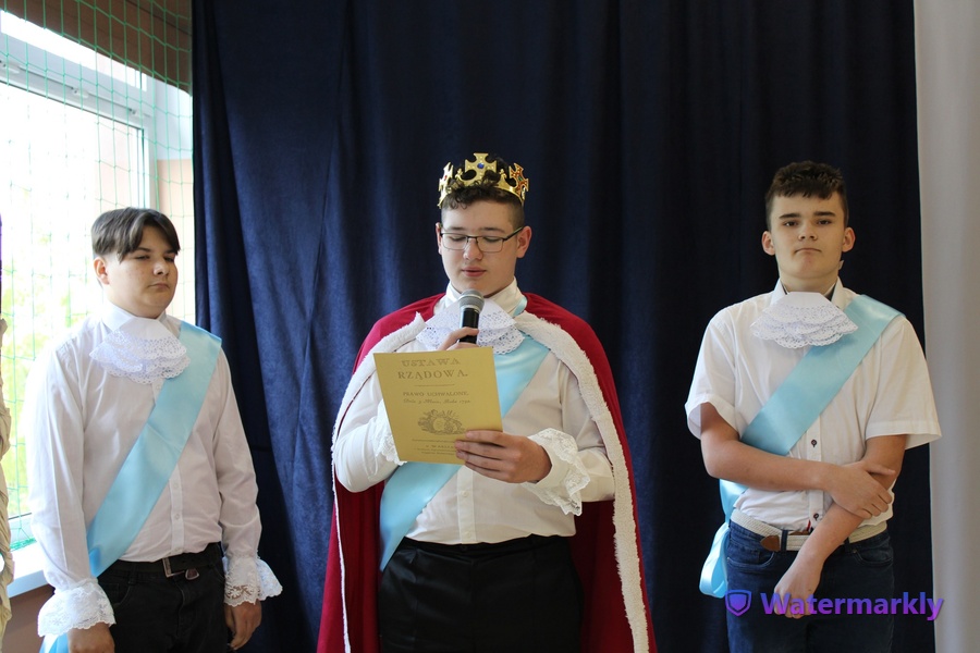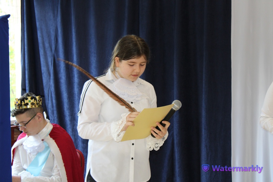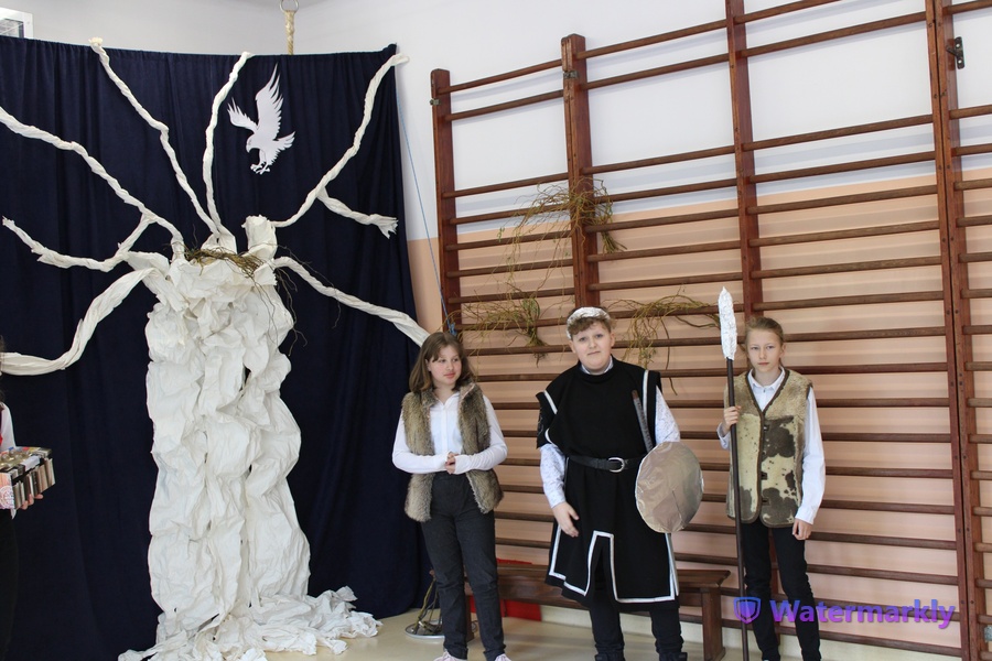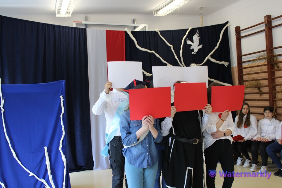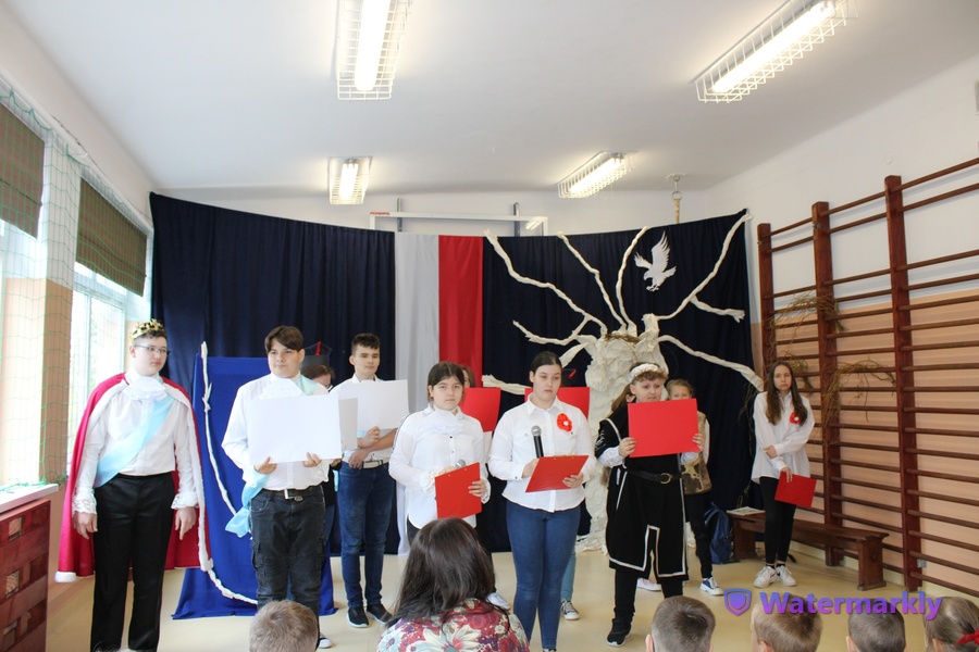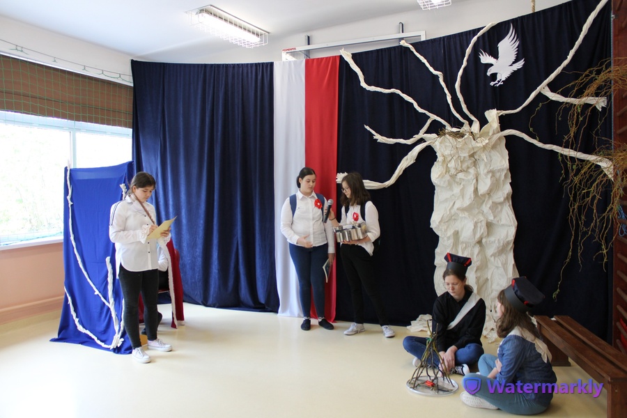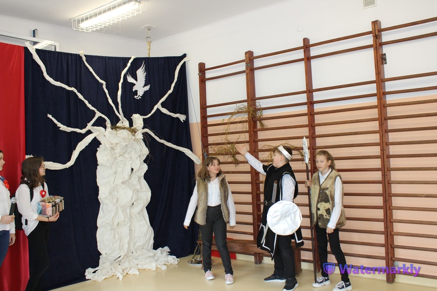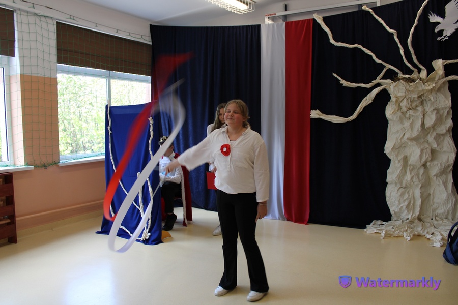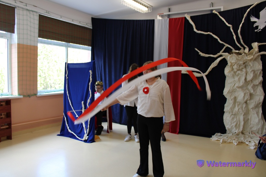 Pamiętamy o ważnych świętach, które obchodzimy w maju. Z tej okazji w czasie szkolnego apelu uczniowie zaprezentowali przedstawienie o godle, fladze, hymnie i konstytucji. Ola i Zosia znalazły tajemnicze pudełko, które okazało się wehikułem czasu. Po włączeniu przycisku zobaczyły Lecha i usłyszały jego decyzję założeniu osady – Gniezna. Rozpoznały legendę o białym orle i naszym godle. Dziewczyny wcisnęły drugi guzik. Tym razem ujrzały króla Stanisława Augusta Poniatowskiego i dwóch posłów. Były świadkami uchwalenia pierwszej w Europie konstytucji, która przeszła do historii pod nazwą Konstytucji 3 Maja. Zosia i Ola sprawdziły trzeci przycisk. Dostrzegły żołnierzy z Legionów Dąbrowskiego siedzących przy ognisku oraz Józefa Wybickiego piszącego słowa „Mazurka Dąbrowskiego”. Utwór stał się w 1927 roku hymnem Polski. Maja z klasy VI wykonała taniec ze wstążką w kolorach naszej flagi, a Nadia i Ola zaśpiewały patriotyczną piosenkę. Podsumowując inscenizację młodzi aktorzy udzielili wskazówek dotyczących tego, co współcześnie możemy zrobić dla Polski. Pojawiły się następujące propozycje: rozwijanie talentów, dbanie o język ojczysty, szanowanie polskich symboli narodowych - godła, flagi, hymnu, uczenie się historii swego narodu, szanowanie przyrody ojczystej i innych ludzi. Na zakończenie spotkania Dyrektor Szkoły p. J. Bojanowska złożyła życzenia Polsce i wszystkim obecnym na apelu. Niech każdy z nas „będzie po prostu dobrym człowiekiem”!