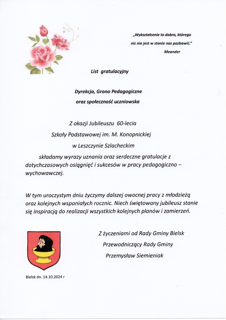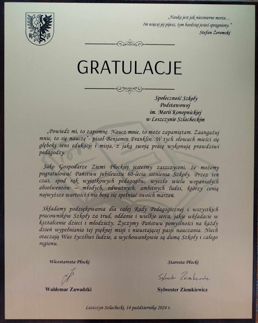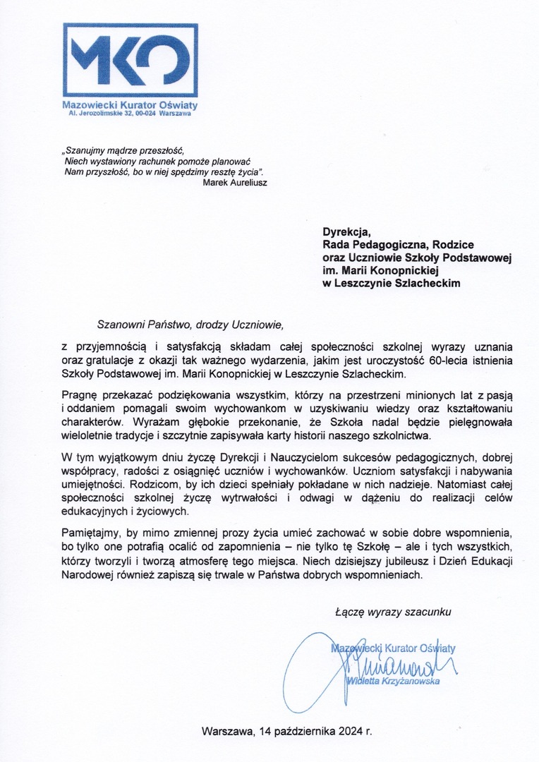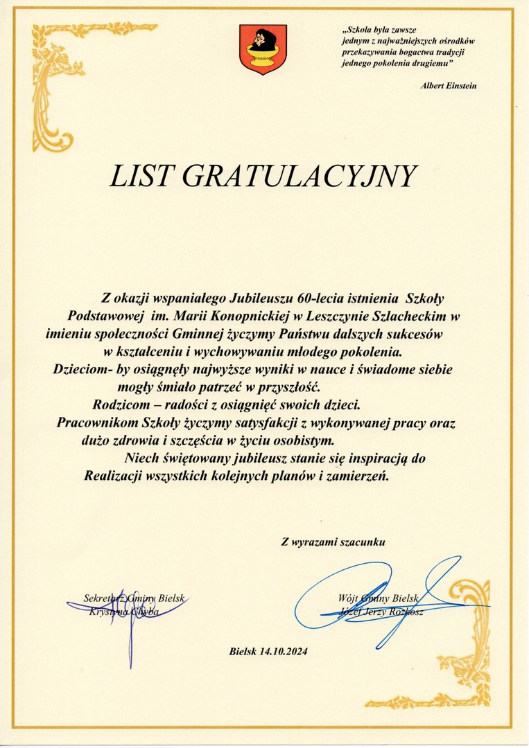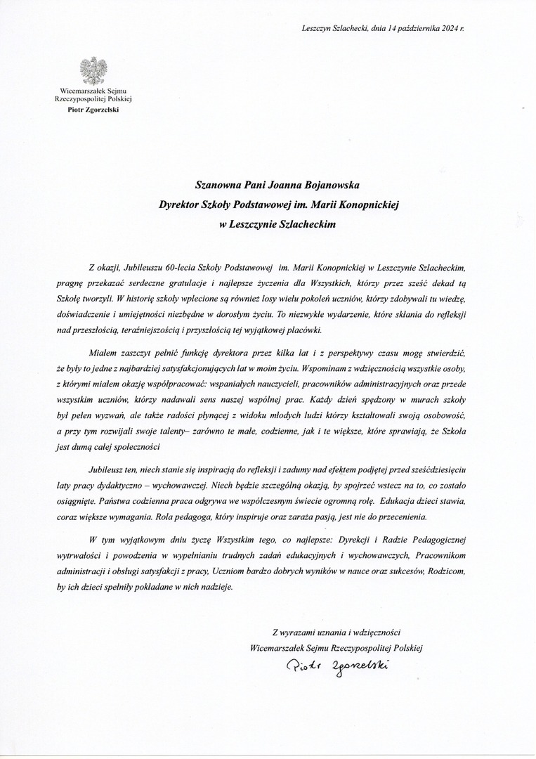 Strona główna JUBILEUSZ 60-LECIA SZKOŁY Listy gratulacyjne