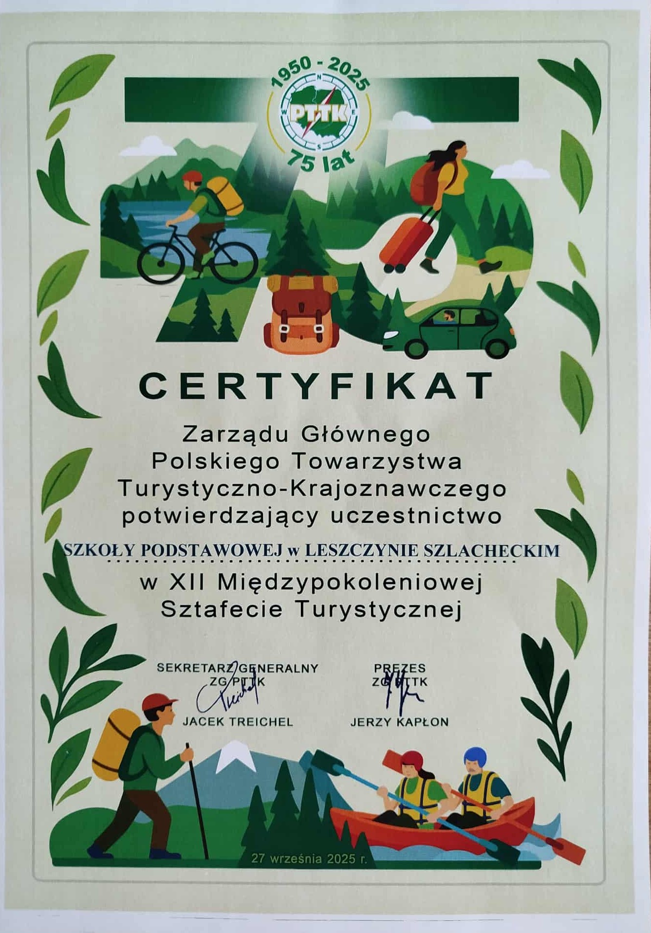 Tego samego dnia odbyła się również XII Międzypokoleniowa Sztafeta Turystyczna zorganizowana przez ZGPTTK. Otrzymaliśmy Certyfikat potwierdzający uczestnictwo.