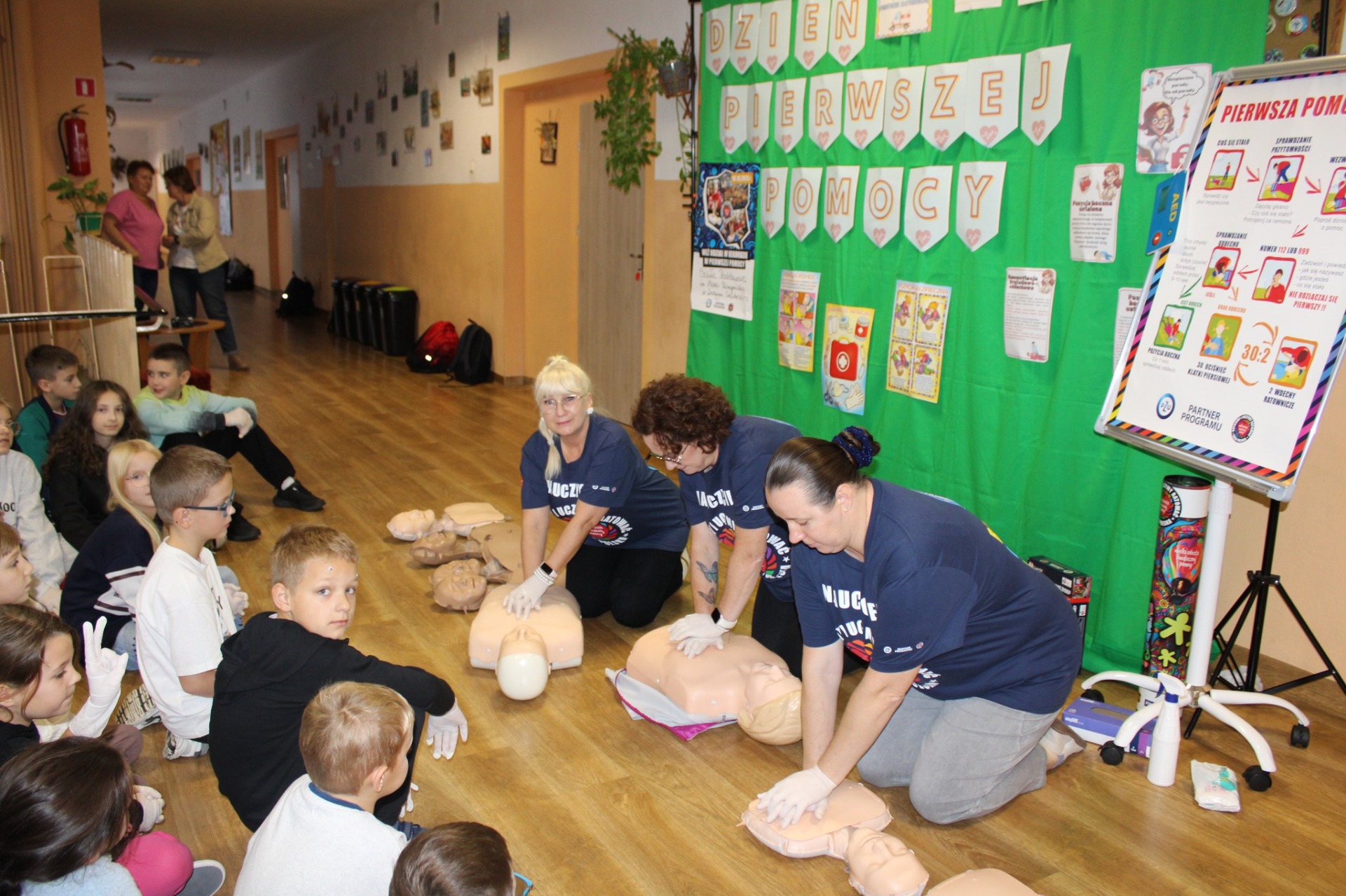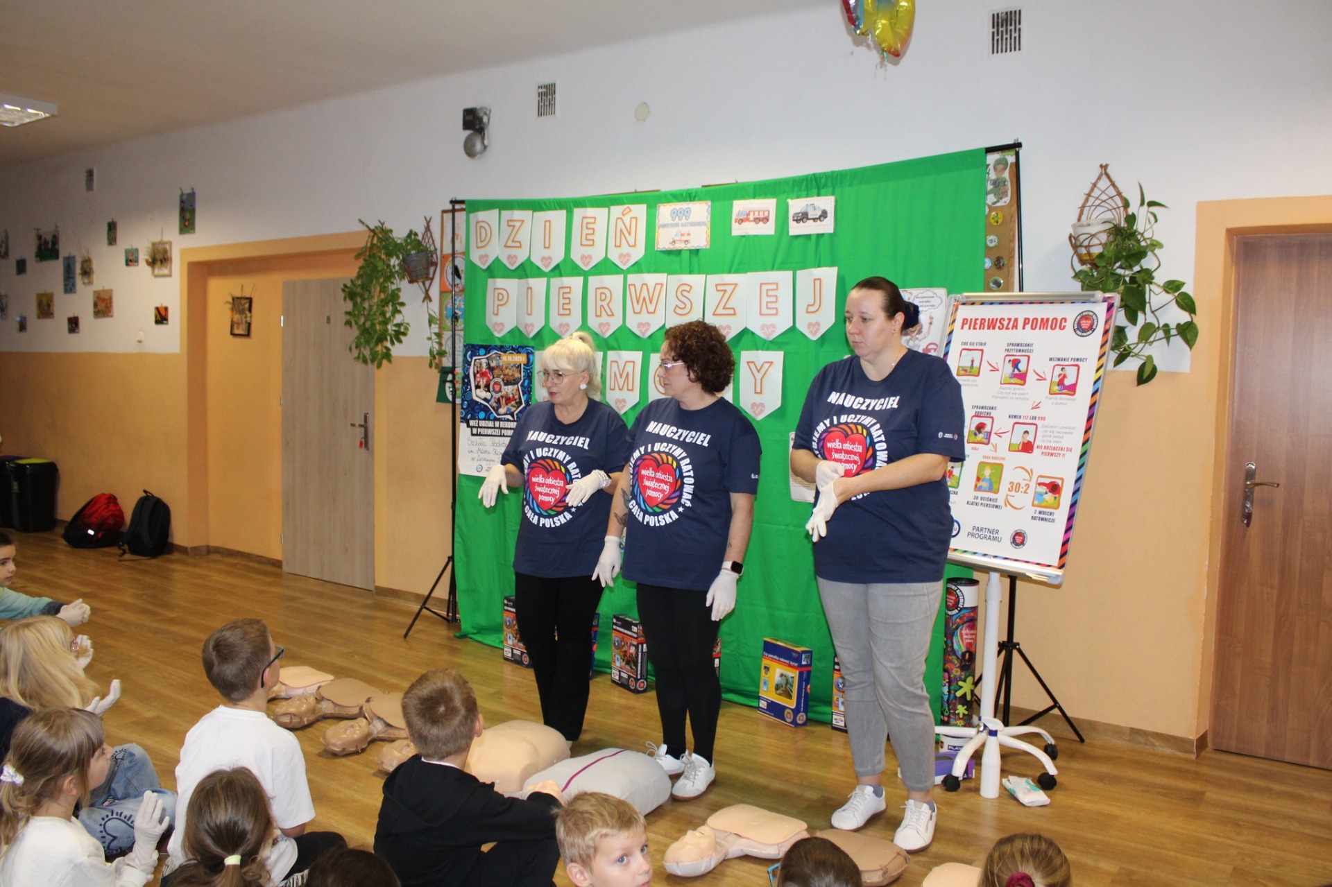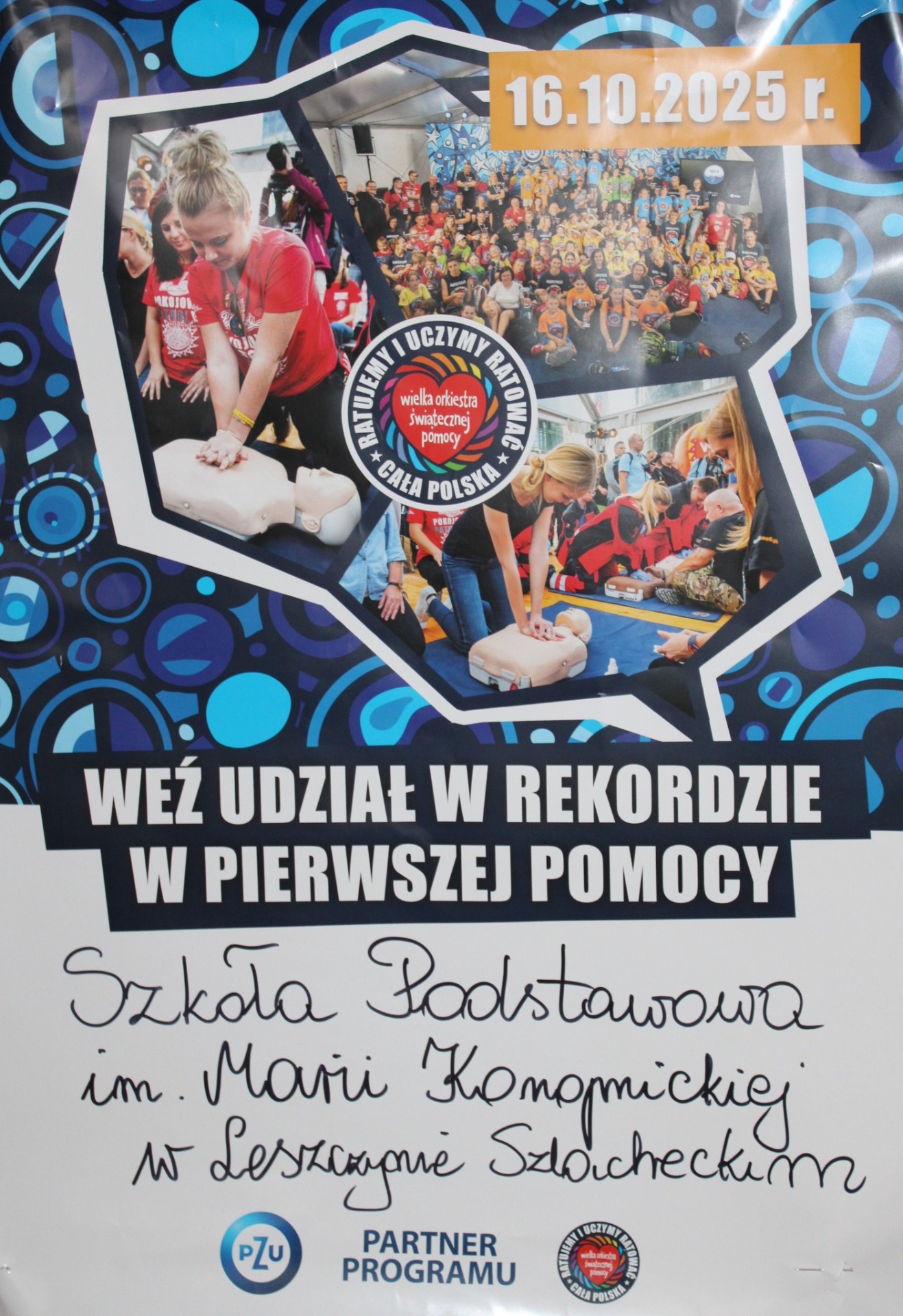 Dziś społeczność naszej szkoły przyłączyła się do wydarzenia, którego organizatorem jest Fundacja WOŚP. Przypomnieliśmy sobie zasady udzielania pierwszej pomocy. Po powtórce wszyscy uczniowie i nauczyciele przystąpili do bicia rekordu resuscytacji krążeniowo-oddechowej. Celem wydarzenia jest popularyzacja wiedzy na temat zasad udzielania pierwszej pomocy w stosunku do osoby, u której wystąpiło nagłe zatrzymanie krążenia.