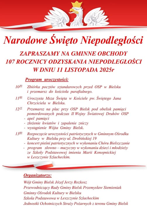 GMINNE OOBCHODY 107. ROCZNICY ODZYSKANIA PRZEZ POLSKĘ NIEPODLEGŁOŚCI.