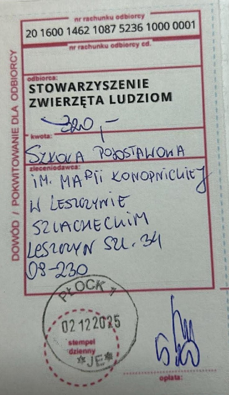 Działania nasze zostały podjęte w ramach programu społeczno-edukacyjnego Psia Lekcja w klasach 0-3. Program realizuje cele w obszarze profilaktyki, wychowania oraz kształtowania postaw społecznych. Obejmuje w szczególności: profilaktykę pogryzień poprzez naukę właściwych zachowań wobec psów, zrozumienie przez dzieci potrzeb psa i sposobów jego komunikacji, kształtowanie umiejętności budowania bezpiecznej i odpowiedzialnej relacji człowiek–pies, rozwijanie świadomości społecznej w zakresie roli psów w terapii, rehabilitacji oraz w niesieniu pomocy osobom chorym, propagowanie wartości empatii, odpowiedzialności oraz poszanowania dla zwierząt.