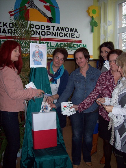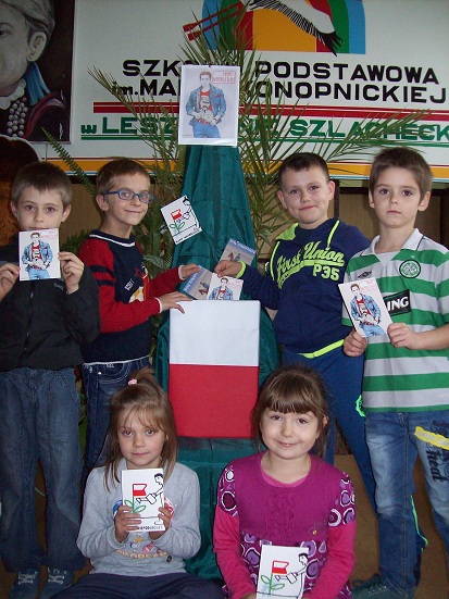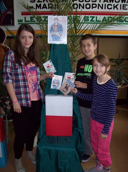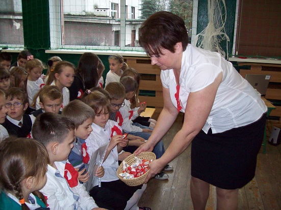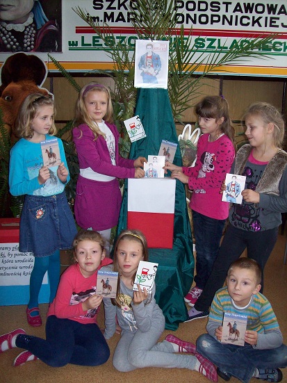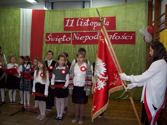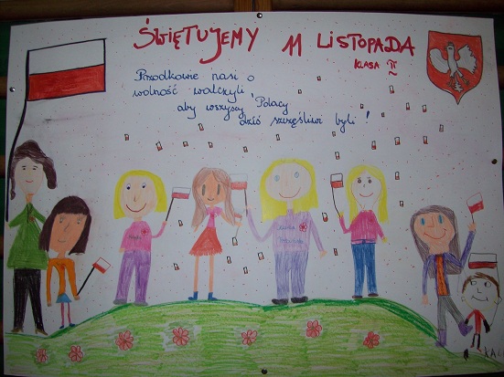 8 listopada w naszej szkole odbyła się uroczysta akademia z okazji Narodowego Święta Niepodległości. Świętowanie rozpoczęliśmy kilka dni wcześniej. Uczniowie na zajęciach komputerowych zapoznali się z edukacyjną stroną „Mieszkańcy spod Jedenastki” przygotowanej przez Dział Edukacji Muzeum Józefa Piłsudskiego w Sulejówku. Następnie uczestniczyli w pogadankach. Opowiadali o bohaterach filmu i historii, która się im przydarzyła. Dostrzegli również związek bohaterów opowieści z historią Polski. Następnie w ramach konkursu rozwiązali krzyżówkę. Ponadto każdy zespół klasowy zilustrował pomysł na radosne świętowanie Narodowego Święta Niepodległości. Do przyjaciół naszej szkoły wysłaliśmy kartki z napisem „Mamy Niepodległą ”.